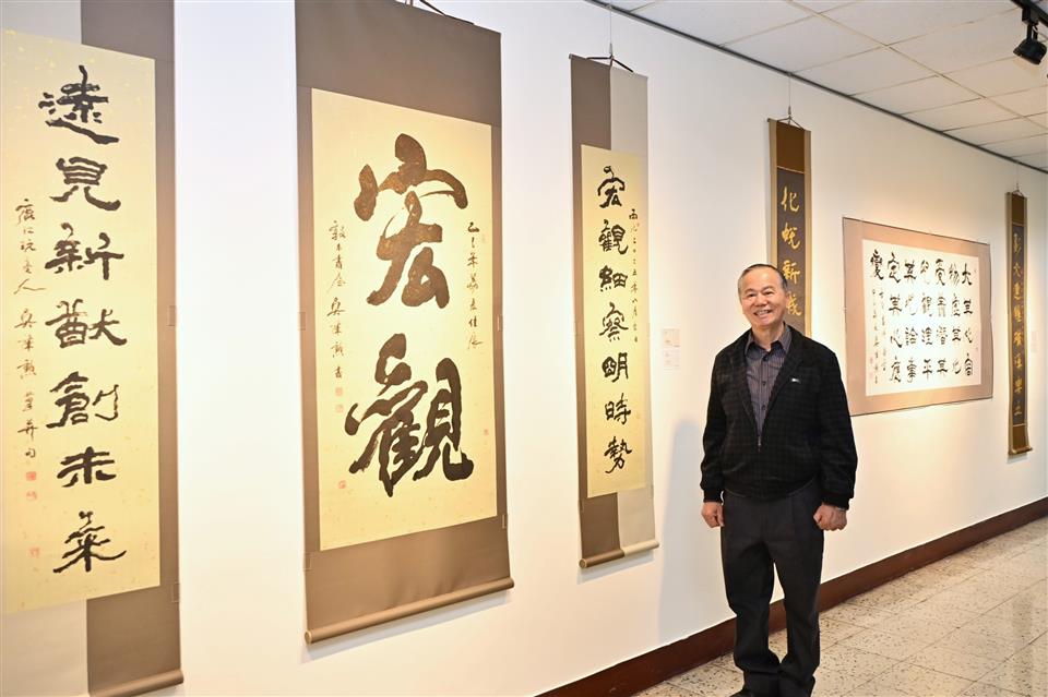新聞焦點 「筆墨傳承.藝韻再現」 彰縣府藝廊即日起至5/31展出吳肇勳老師書法作品 歷史訊息 | 發布日期 2026/01/26~2026/02/26 | 發佈單位: 行政處 | 發佈日期: 郭代理科長 7531070 | 更新日期 2026/01/26 | 瀏覽人數: 12人 為傳承書法藝術之美,彰化縣政府特別邀請在地書法名家吳肇勳老師,即日起至5月31日在縣府藝廊舉辦個人書法作品展。本次共展出15件精選作品,涵蓋中堂、對聯、條幅等多元素材,並融匯行書、篆書、隸書等書體風格。從點畫運筆、線條節奏、結構布局到氛圍醞釀,在自然中流露深厚功力與人文意趣。誠摯邀請民眾蒞臨欣賞,近距離感受筆墨間的蒼勁與人文情懷。 吳肇勳老師表示,很榮幸能到縣府大樓進行展覽,希望藉由書法作品,讓民眾到縣府洽公或縣府同仁辦公之餘有機會接觸書法藝術,藉此認識書法裡的點畫、線條及結構,親身感受古人智慧。每個樓層的樓梯間都有展出作品,如3樓樓梯間展出的「福茂德隆」,是書寫完待墨水乾掉之後貼上金箔,還記得當下剛好是冬至同時為天赦日,下次要同時遇到冬至及天赦日,要等到80年後,極為難得。 行政處長吳蘭梅表示,這次展出吳肇勳老師的作品,可說皆為大作。大家如仔細欣賞,會發現老師每件作品都寓意深遠,特別是在墨色運用、字體與字型的呈現,每一件作品都不盡相同,各領風華。不論是洽公或專程前來,都誠摯歡迎民眾到現場一睹大師風采。 吳肇勳,字敦本,西元1955年生。先祖來台世居彰化鹿港,得家族長輩雅好書藝之薰陶,自幼習書並獲多位師長教益,目前專事書作,執掌「吳肇勳書法館」,現任彰化縣書法學會理事長、台灣中國書法學會理事、台灣中華書道學會理事。早年熱衷獎赛,國展、省展、南瀛、玉山、大墩、中部、磺溪等各大美展,迭有佳獲,中年之後多次參與海外及大陸書法文化交流廣開視野、滋培藝道,曾任彰化縣鹿江詩書畫學會理事長及半缸書會會長暨各地友會之顧問,已有20餘場次個展經驗。 彰化縣政府表示,吳肇勳老師書法作品深勁有力,每一幅皆蘊含豐富意涵,此次為推廣傳統藝術,在廳舍各處展出具有厚實韻味之書法大作。竭誠歡迎民眾蒞臨欣賞,從筆墨的揮灑中看見歲月累積的絕代風華。